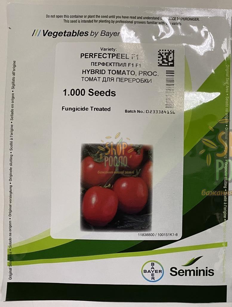 Детермінантний ранній гібрид томату Перфектпіл F1 призначений для вирощування у відкритому грунті та плівкових тунелях як розсадним способом, так і висівом безпосередньо в грунт. Лідер гібриду томатів для переробки на ринку Італії. Рекомендована густота – 32-37 тис./га. Рослина низькоросла, до 50 см, з потужним стеблом та пагонами. Сила зростання середня. Плоди відмінно зберігаються безпосередньо на кущах, листя захищає плоди від сонця. Можливе механізоване прибирання. Високо стійко до фузаріозу (Fol 0,1), вертициллезу (Vа:0/Vd:0), сірої та бактеріальної плямистості та альтернаріозного раку стебла.