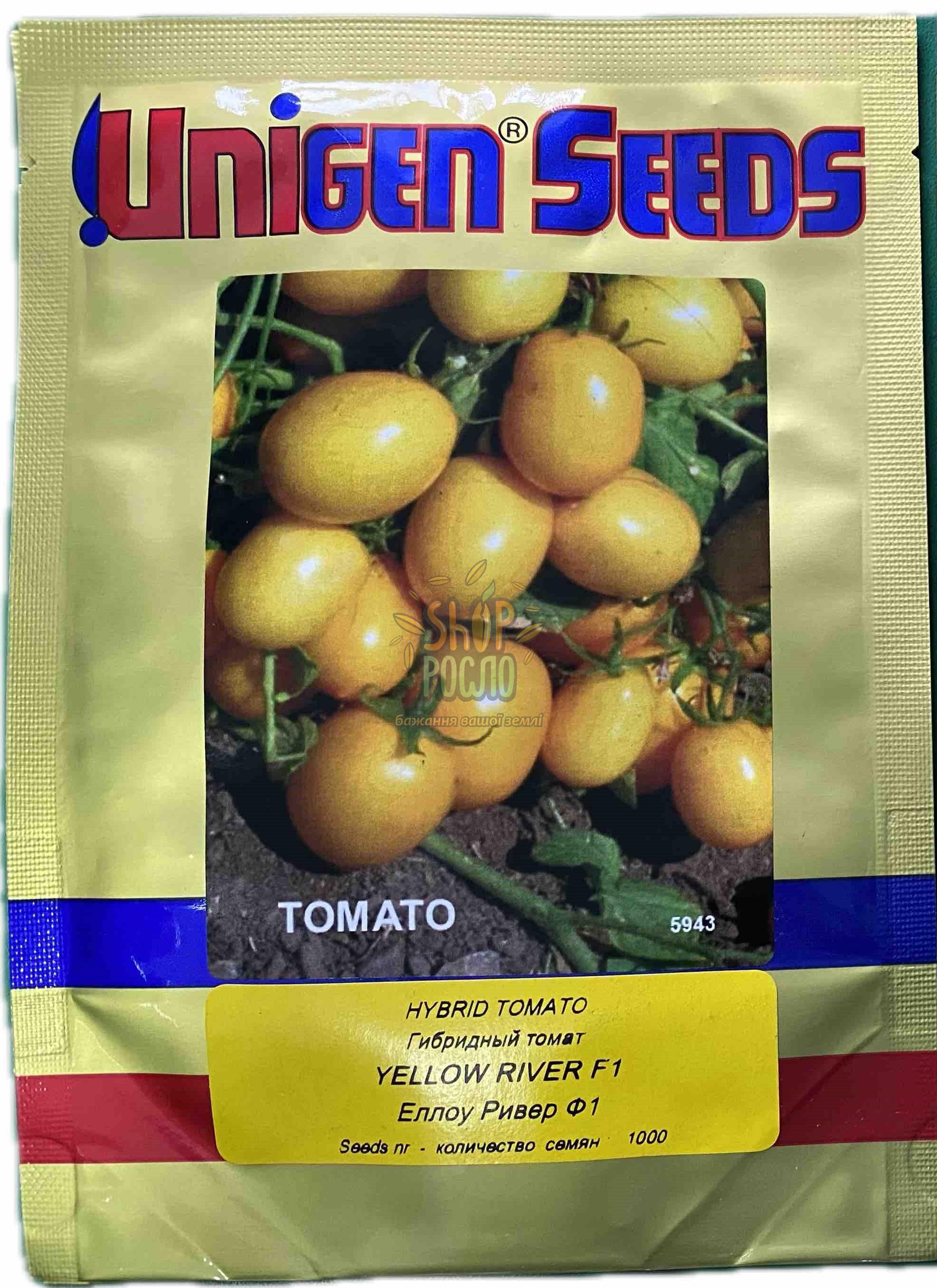 Елоу Рівер F1 – детермінантний ранній гібрид жовтого кольору. Підходить для свіжого ринку та переробки (у тому числі приготування кетчупу та томат-пасти). Плід овально-подовжений, яскраво-жовтий, маса до 85 г. Має відмінні смакові якості. Високий рівень транспортабельності, відмінний товарний вигляд, гарний рівень безпеки в полі та висока врожайність - ось переваги цього гібрида.
