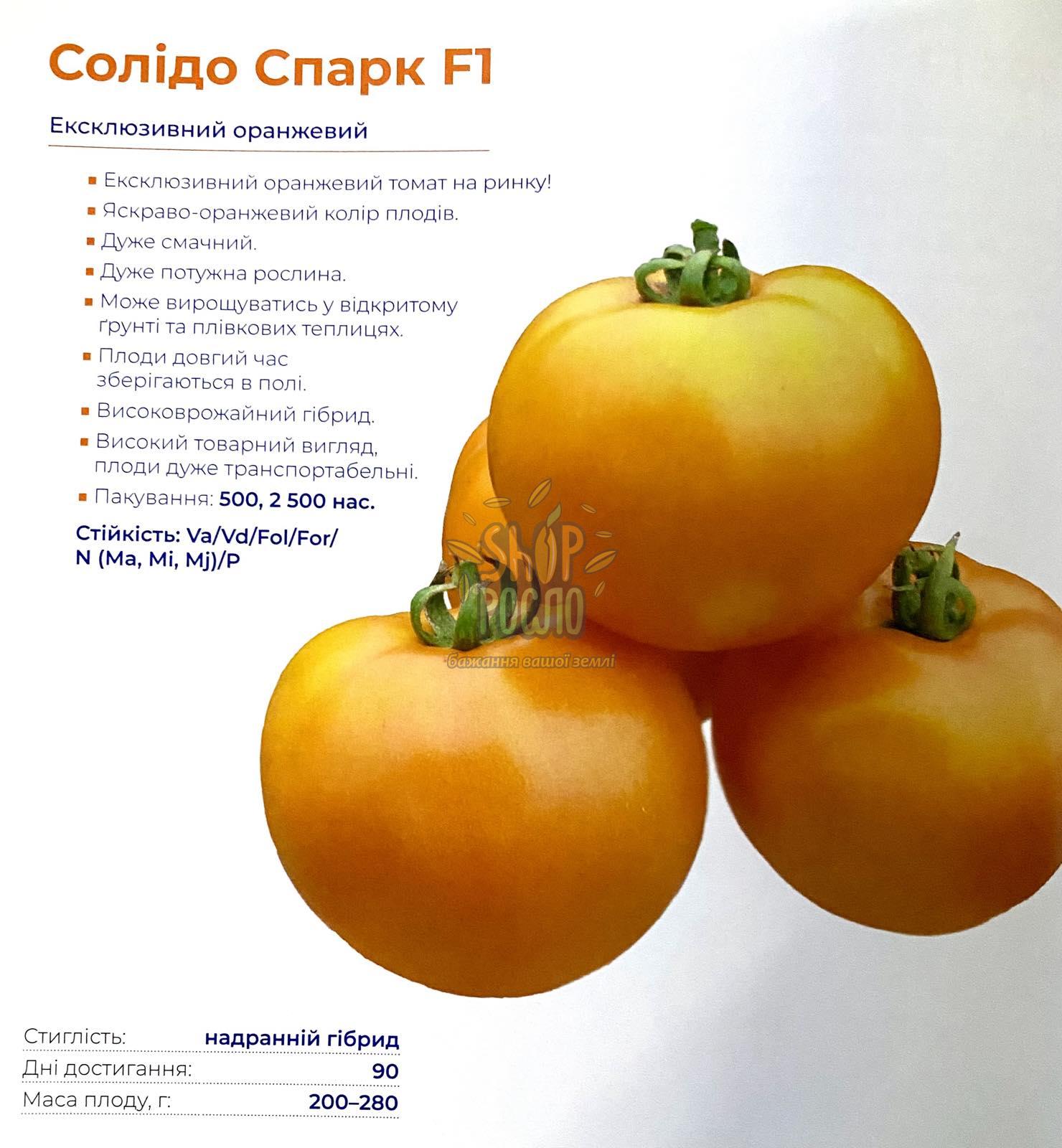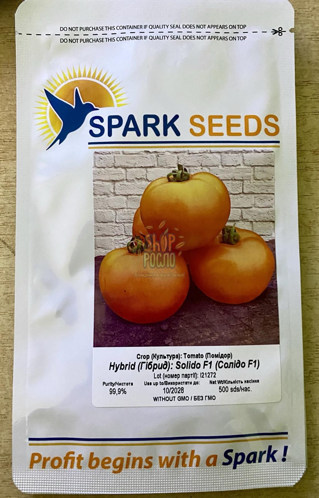 Семена томата Солидо F1, ранний оранжевый гибрид,"Spark Seeds" (США), 500 шт