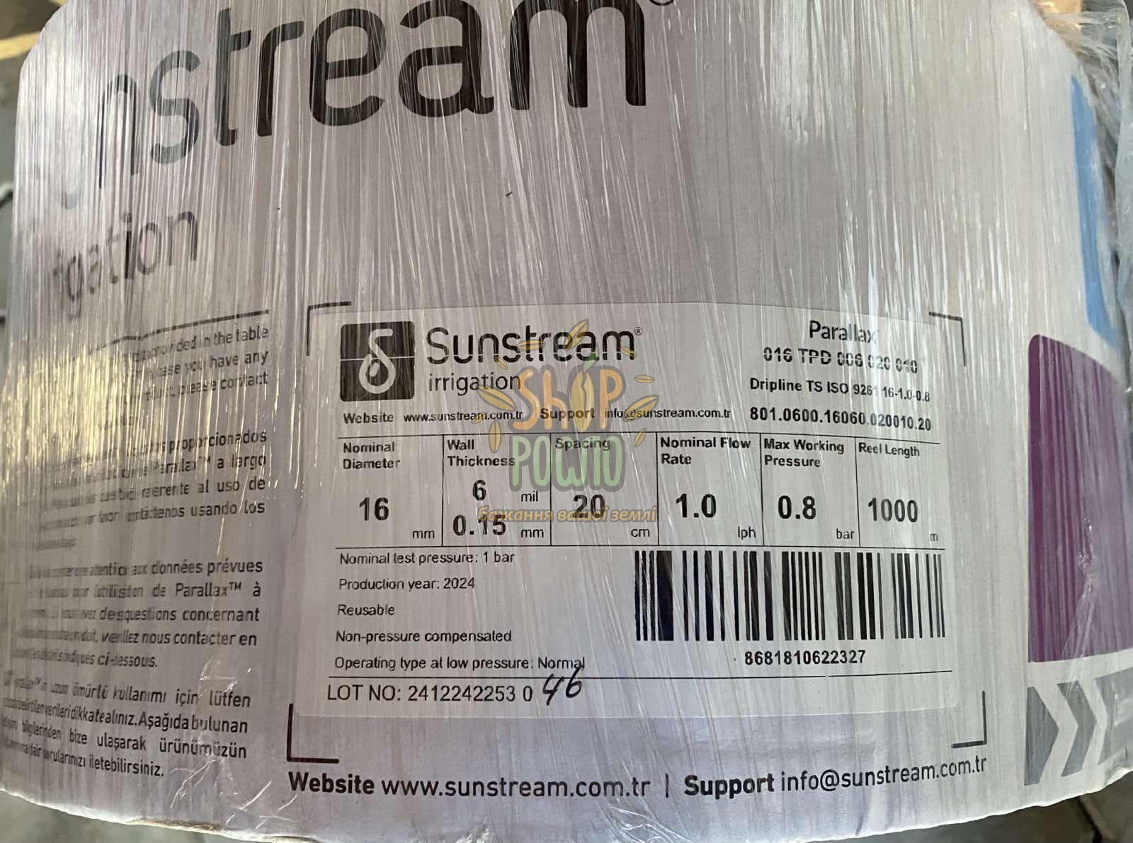 Капельная лента Sunstream (Турция) 6 mil/20 см, водовылив 1,0 л/ч, щелевая, 1000 м