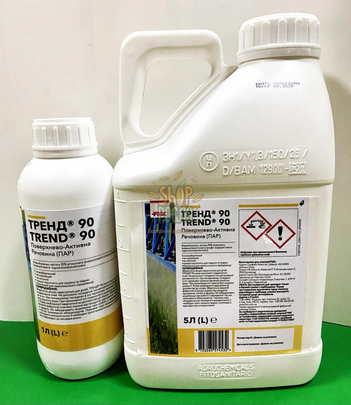 Приготування: бак наповнюють наполовину водою, додають гербіциди, потім при перемішуванні додають Тренд 90, після чого доливають воду до повного об'єму.