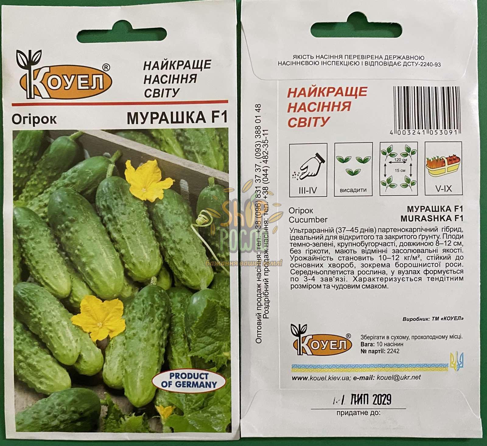 Насіння огірка Мурашка F1, ранній партенокарпічний гібрид, Коуел (Німеччина), 10 шт