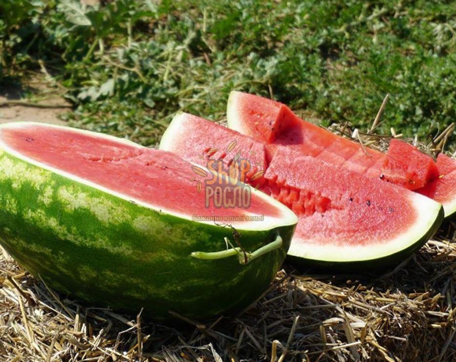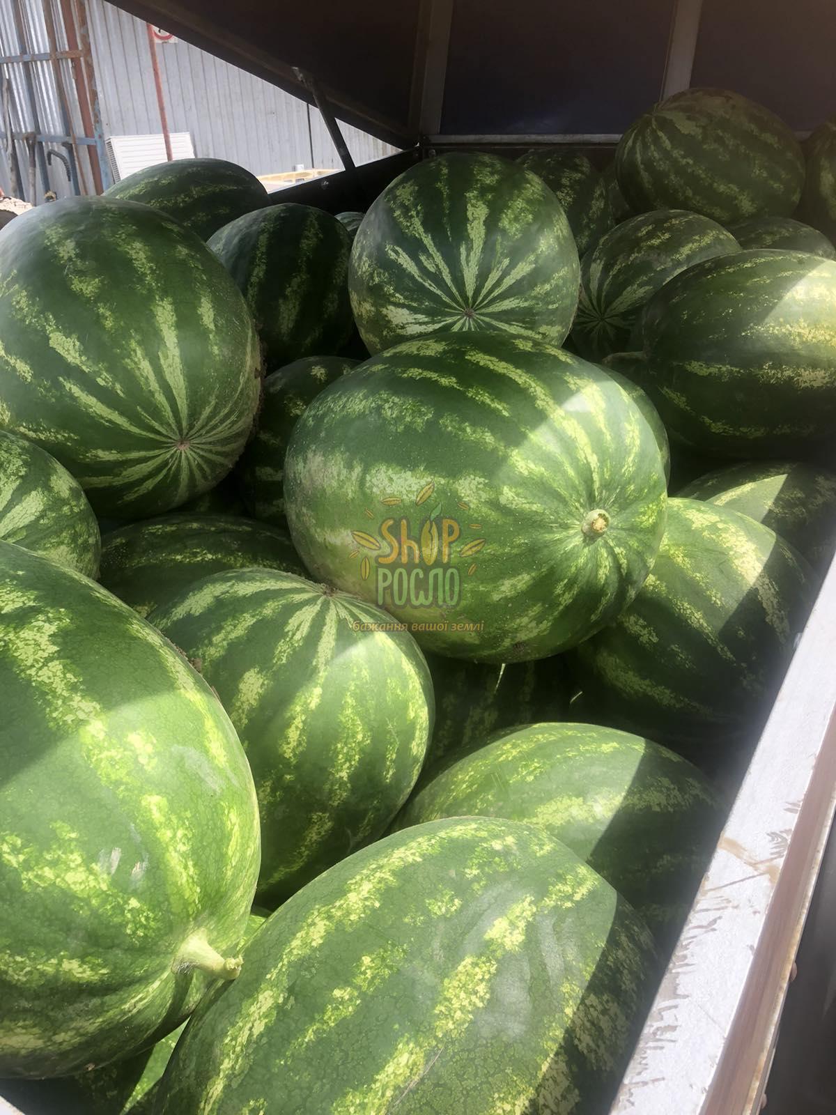 Астрахан F1 - при высаживании рассады, первый сбор урожая можно получить уже через 65 дней. Растение с хорошей энергией роста и длинными стеблями. Формирует 3-5 плода, выровненных по размеру. Быстро адаптируется к любым условиям выращивания и агротехнике. Не подвержено фузариозному увяданию и антракнозу. Гибрид нетребователен к условиям выращивания. Имеет высокую завязываимость плодов при засушливых условиях віращивания. Средний размер пллода 10-12 кг (может дорастать до 15 кг). Мякоть ярко-красная с высоким содержанием сахара, имеет превосходные вкусовые качества.