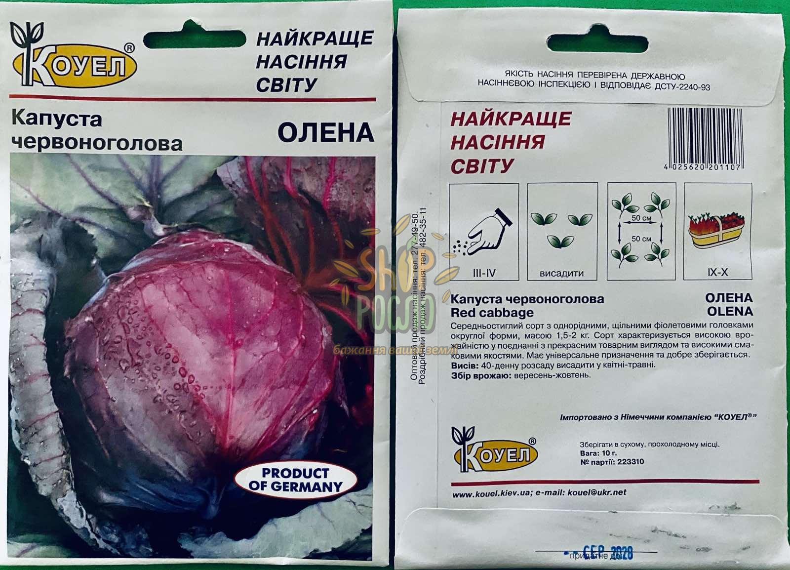 Насіння капусти червоноголової Олена (Алена) F1, середньостиглий гібрид, Коуэл (Німеччина), 10 г