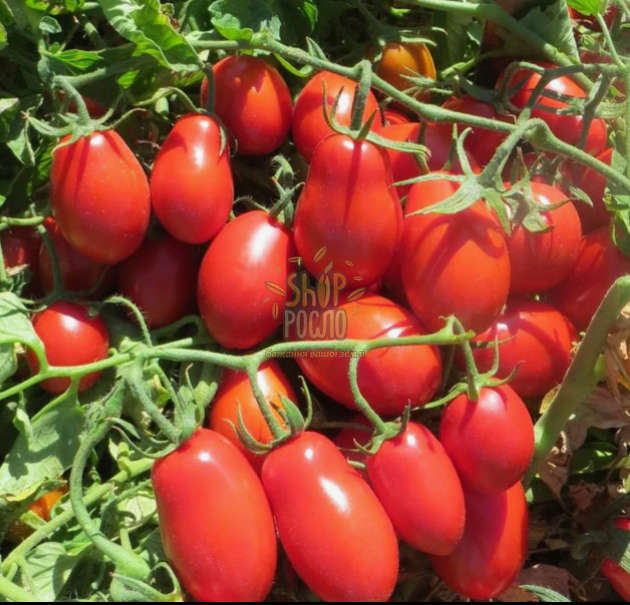 Растение низкорослое, компактоне, но мощное. Плоды формируются и созревают на кисти по 8-10 штук. Плоды маленького размера, массой 20-30 г (до 50 г), ярко-красные. Очень плотные, ароматные, хорошо транспортируются и длительное время хранятся без потери качества. Благодаря своим форме, лежкости и вкусовым качествам данный томат отлично подходит и для свежего рынка и для переработки.