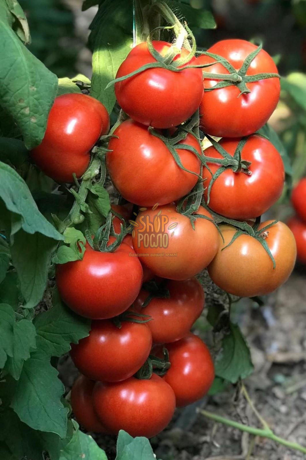 Крупноплодный гибрид, предназначен для выращивания в открытом грунте и в низких пленочных теплицах. Подходит для выращивания во всех почвенно-климатических зонах Украины. Растения средней силы роста с отличным листовым аппаратом. Гибрид можно выращивать как полудетерминантный томат с использованием подвязки в теплицах и без нее - в открытом грунте. Плоды многокамерные, округлой формы, однородные, плотные, насыщенно-красного цвета.