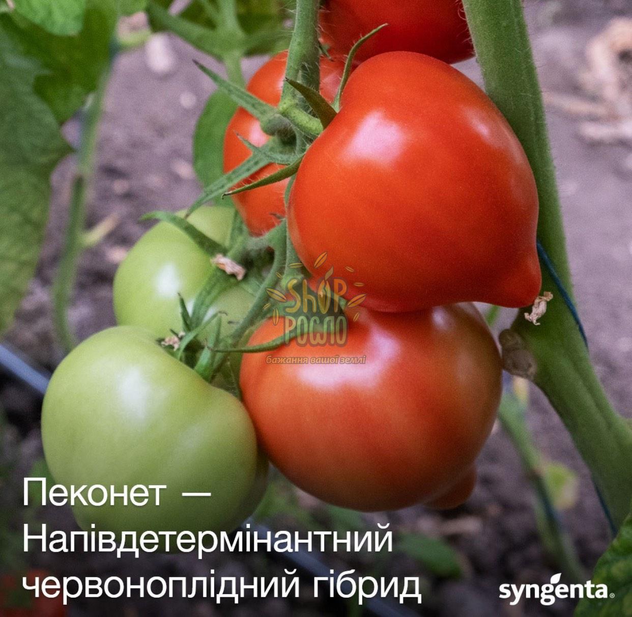 Напівдетермінантний ранній гібрид томату Пеконет F1 призначений для вирощування у закритому та відкритому ґрунті. Відмінно показує себе при вирощуванні в одне стебло з густотою стояння 3,4-3,6 шт./м.кв. Через швидке наливання плодів і велику кількість зав'язі слід звертати увагу на розвиток верхівки. Рослина генеративного типу. Відкрите, компактне, сильне. Демонструє відмінну зав'язуваність навіть при нестачі світла та зниженій температурі.