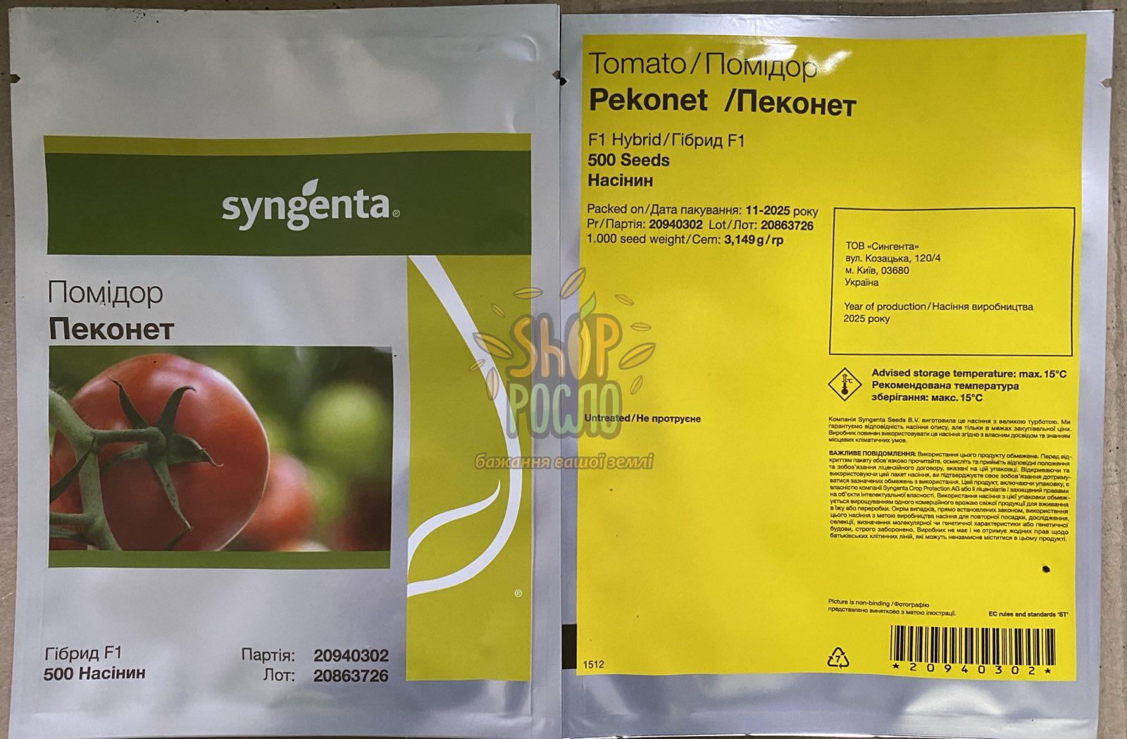Семена томата Пеконет F1, полудетерминатный, ранний гибрид, Syngenta (Швейцария), 100 шт (Фас)