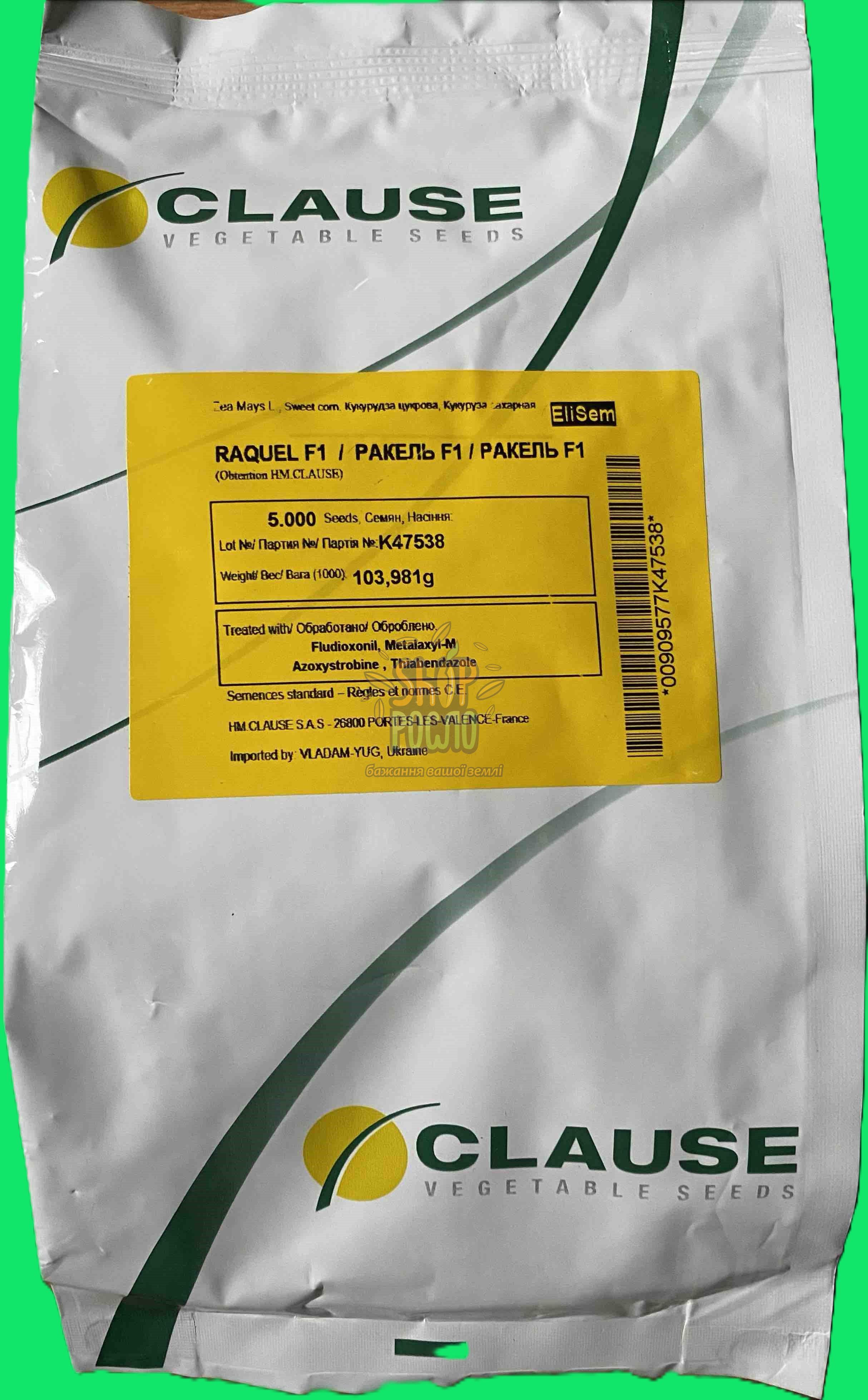 Кукуруза Ракель - эталон суперсладкой биколор кукурузы в Украине от компании Clause (Франция). Ранний срок вегетации - 70-73 дня. Отличный товарный вид. Формирует тяжелый початок - Ø 5,5- 6 см, длиной 20-22 см, 16-18 рядов зерен. Однородный по форме и размеру. Зерна крупные, желтые с белыми вкраплениями, прекрасной текстуры, нежный медовый вкус. Идеальный вариант для свежего рынка .Первая биколор супер сладкая кукуруза на рынке. Отлично развивается при жаркой погоде и засухе.Для употребления варится 5 минут.Самая ранняя и стабильно товарная продукция в нише биколор кукуруз.