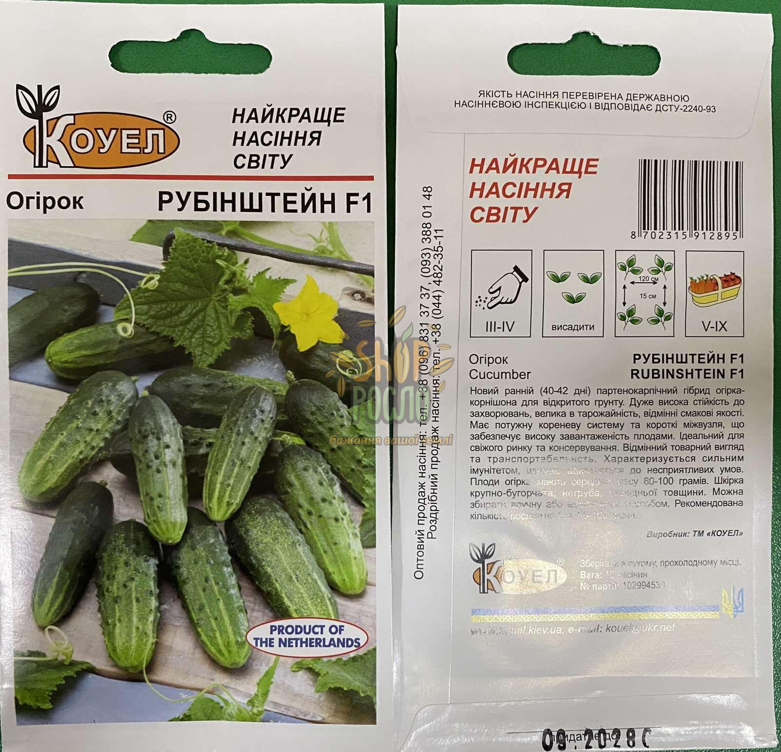 Насіння огірка Рубинштейн F1, ранній партенокарпічний гібрид, Коуэл (Німеччина), 10 шт
